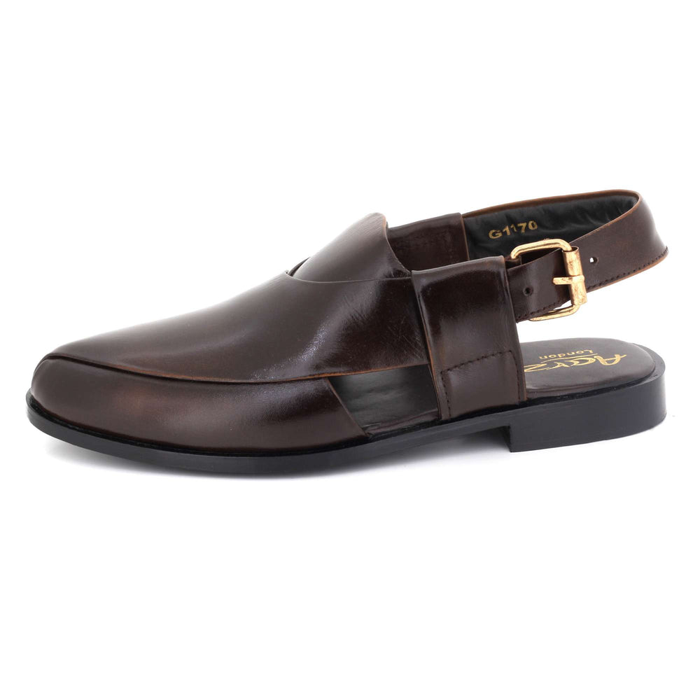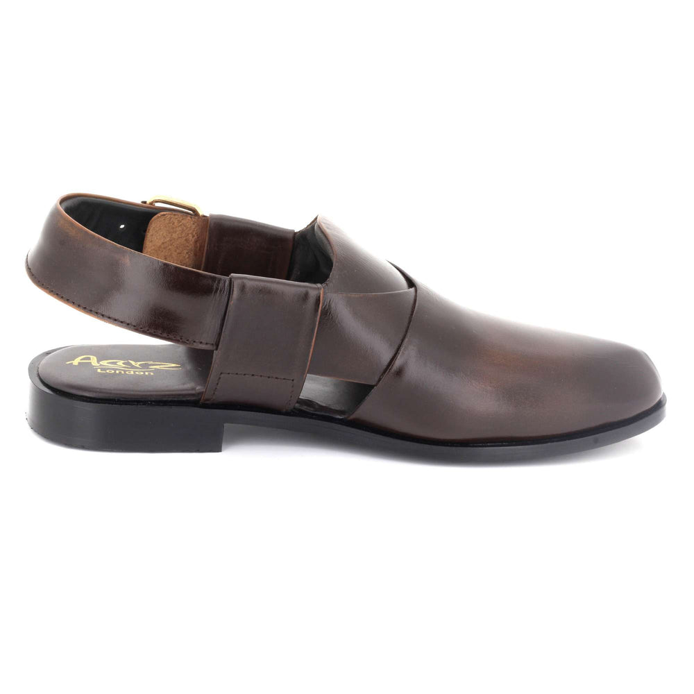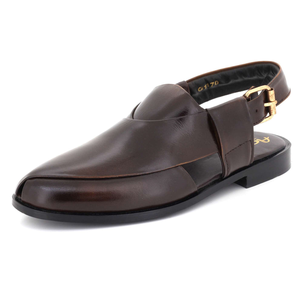 Step into timeless South Asian tradition with these premium Pakistani Kheri sandals inspired by authentic Peshawari chappal craftsmanship. Designed with a smooth polished brown leather-look upper and classic stitched detailing, these sandals combine traditional elegance with modern comfort. The slip-on open-back design allows easy wear, while the adjustable buckle strap ensures a secure fit. Built with a durable sole and comfortable footbed, these kheri sandals are ideal for Eid celebrations, weddings, religious gatherings, cultural events, and everyday smart casual styling. Perfectly suited to pair with shalwar kameez, kurta pajama, or western outfits for versatile ethnic fashion.