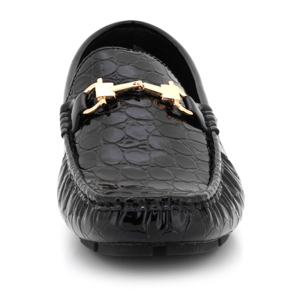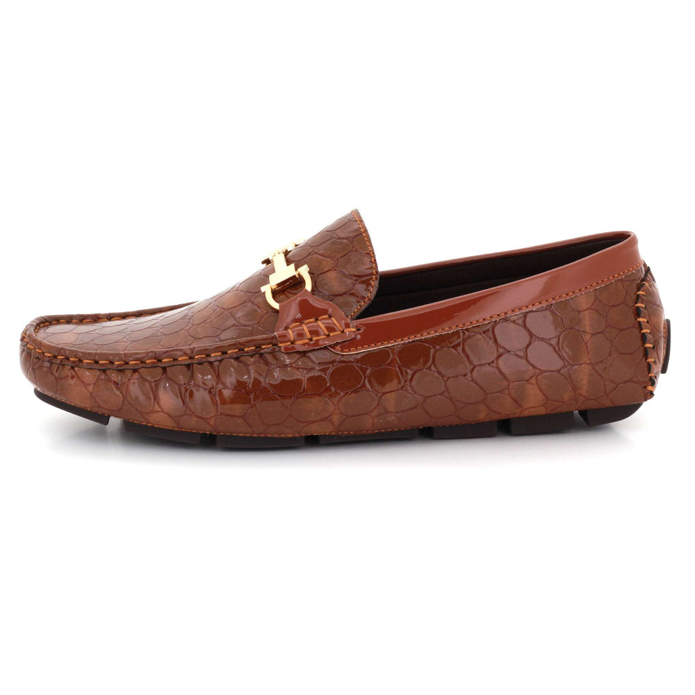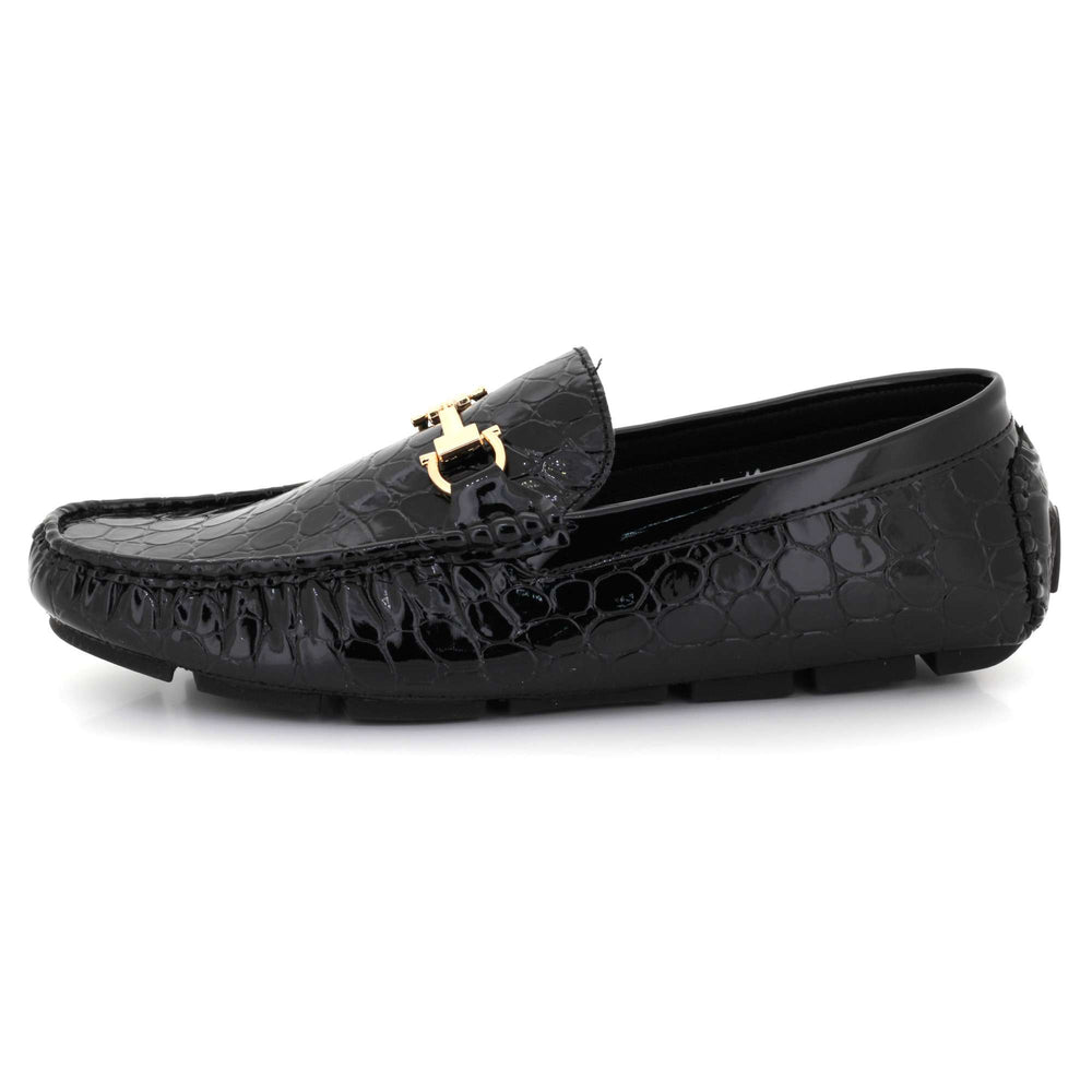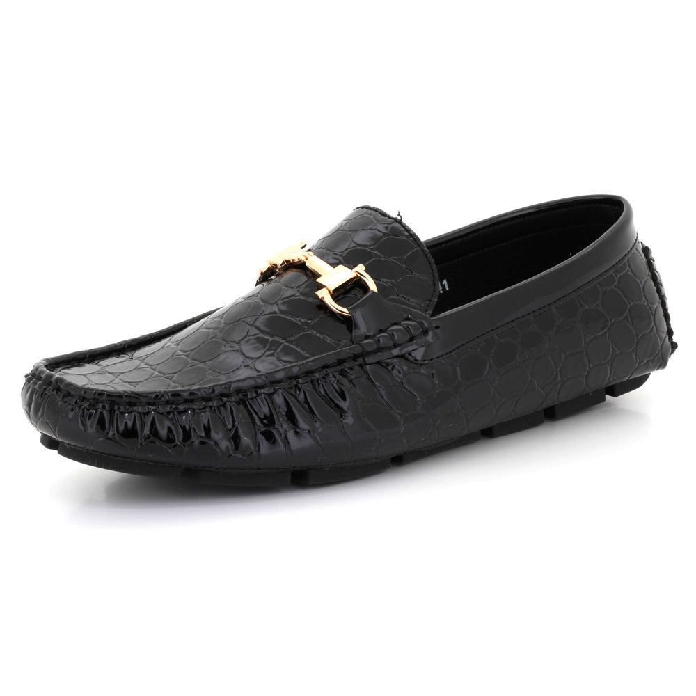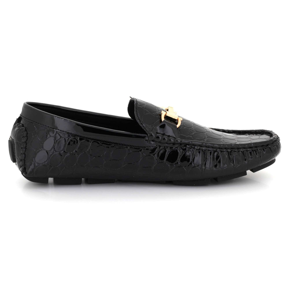 Elevate your everyday style with these men’s crocodile-texture faux leather loafers, designed for comfort, versatility, and standout elegance. Crafted with a premium embossed upper, they bring a luxurious appearance without sacrificing durability. The polished metal bit accent adds a refined detail that pairs effortlessly with trousers, chinos, or denim. Inside, a cushioned insole and smooth lining deliver prolonged comfort, making them ideal for walking, long drives, and daily wear. A lightweight, flexible outsole ensures slip resistance and natural movement, while the slip-on construction provides quick, easy wear. Perfect for work, casual outings, travel, or smart-casual events.