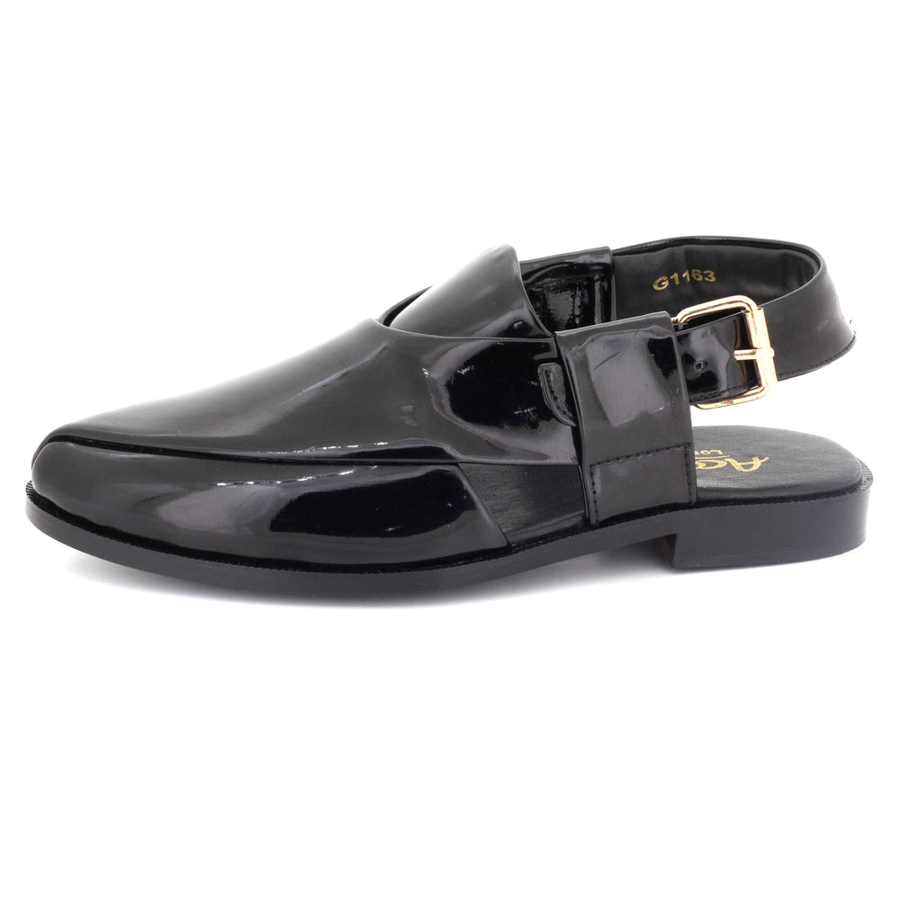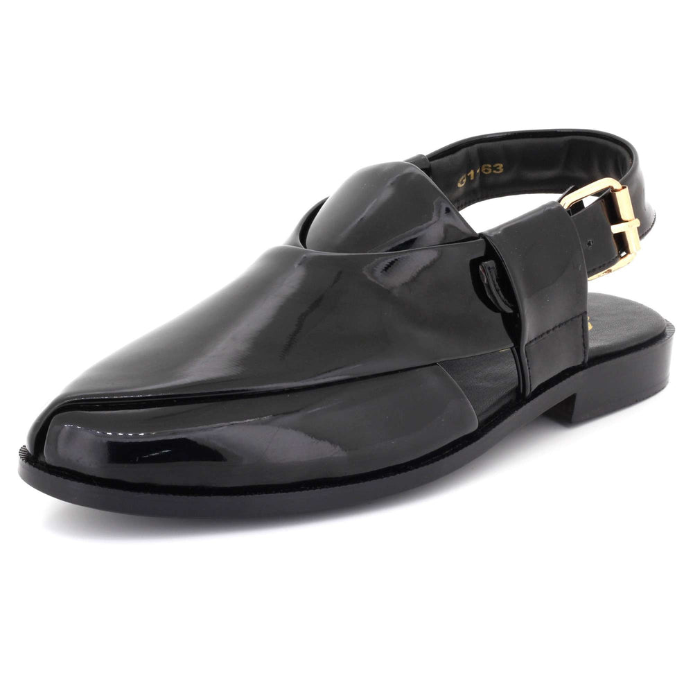 Experience traditional craftsmanship with these men’s Pakistani Kheri sandals, inspired by classic Peshawari style. Designed with a sleek black leather-look finish and distinctive buckle strap detail, these slip-on sandals combine cultural heritage with modern comfort. The square toe design and open-back structure provide easy wear and breathability, making them ideal for everyday use, cultural events, Eid celebrations, weddings, or smart casual occasions. Crafted for durability and comfort, the sturdy sole and supportive structure ensure reliable wear while maintaining authentic traditional styling. Perfectly paired with shalwar kameez, kurta pajama, or smart casual outfits, these kheri sandals deliver timeless South Asian elegance.