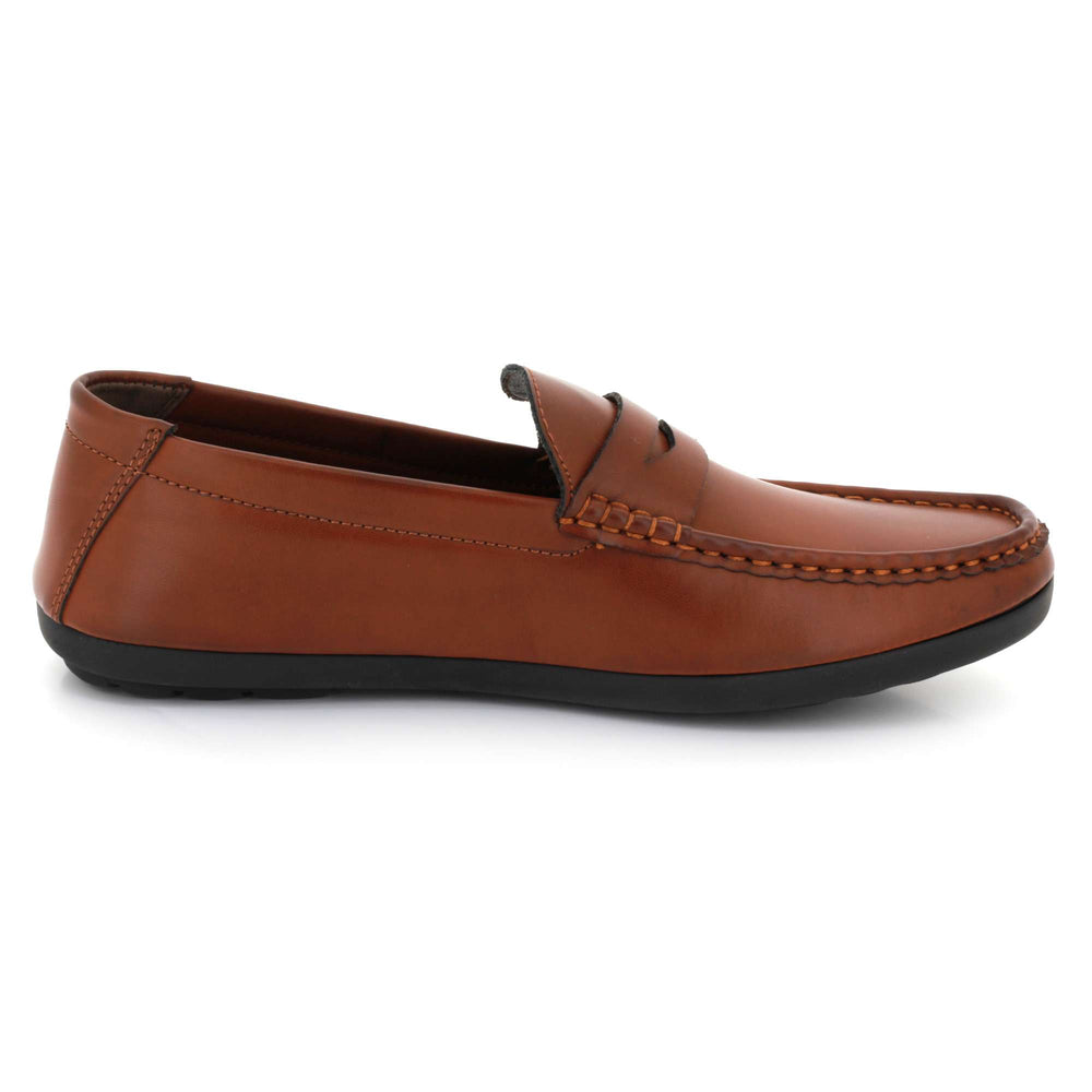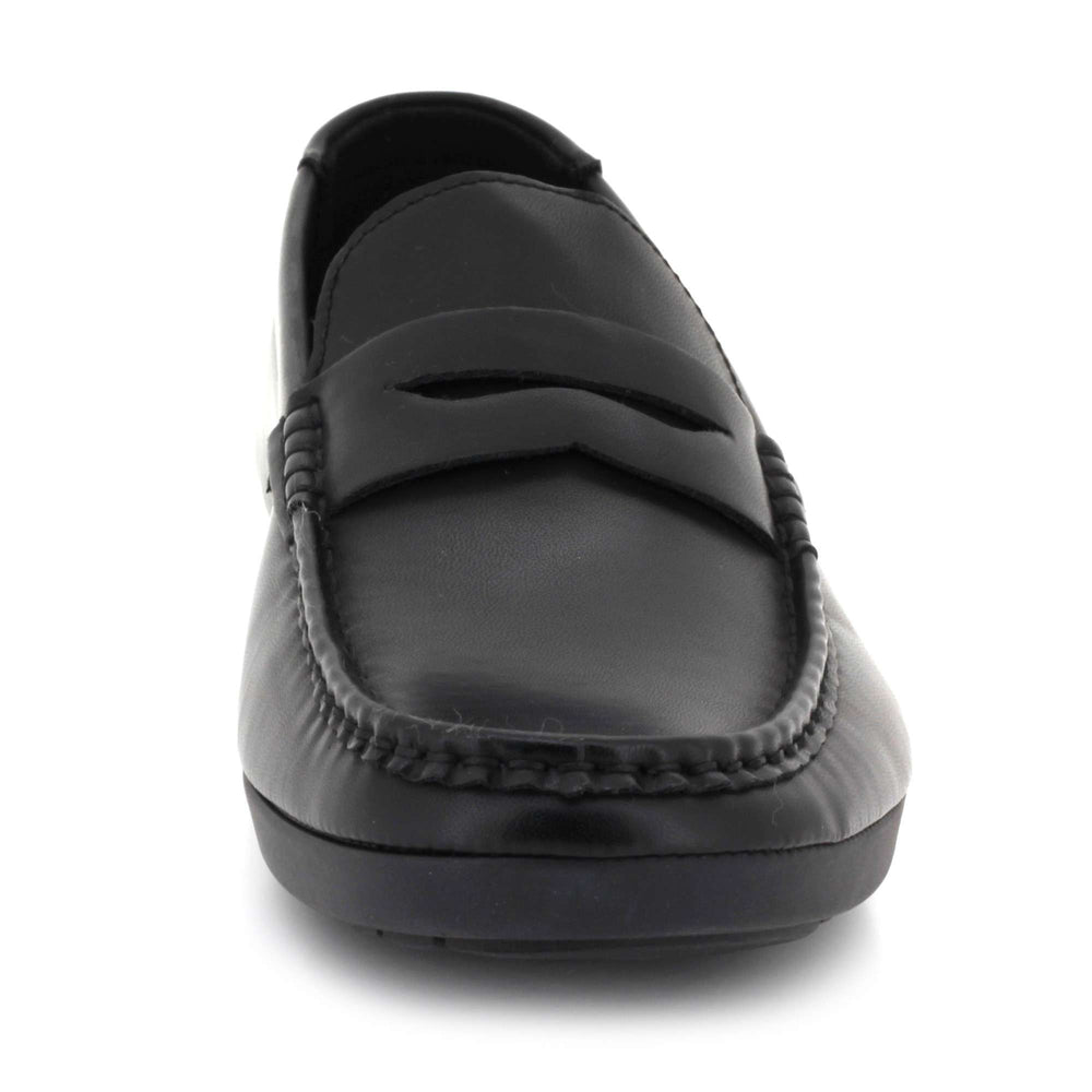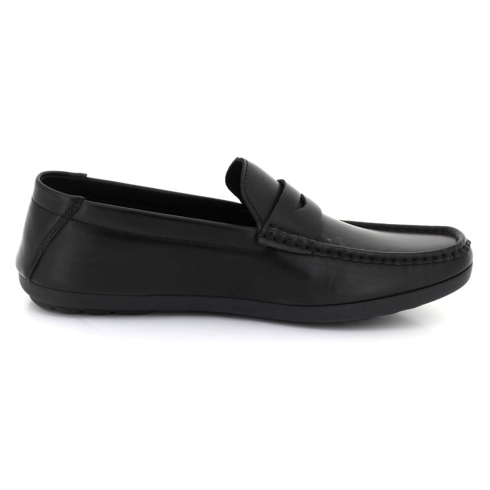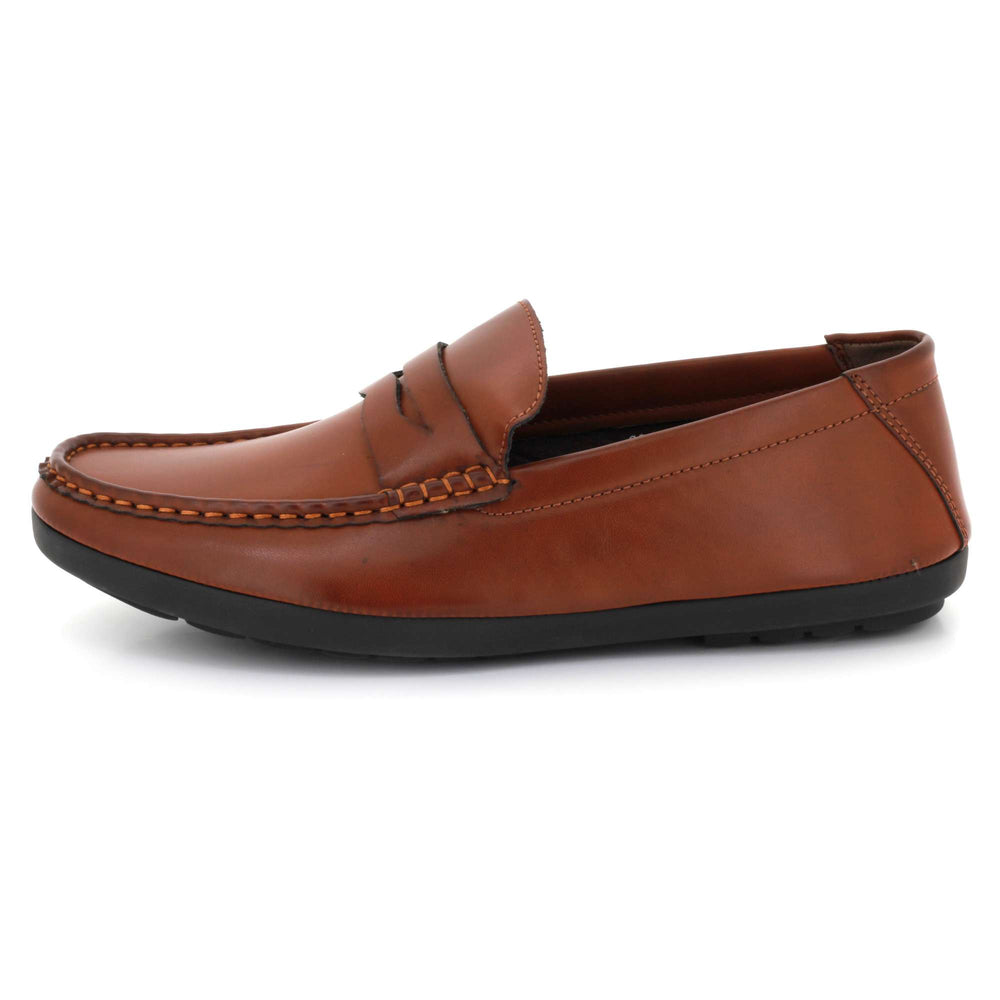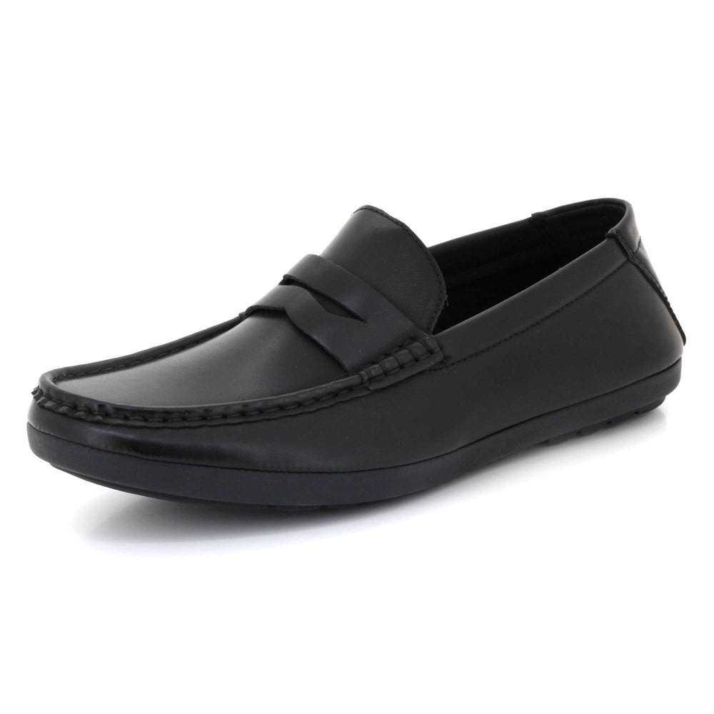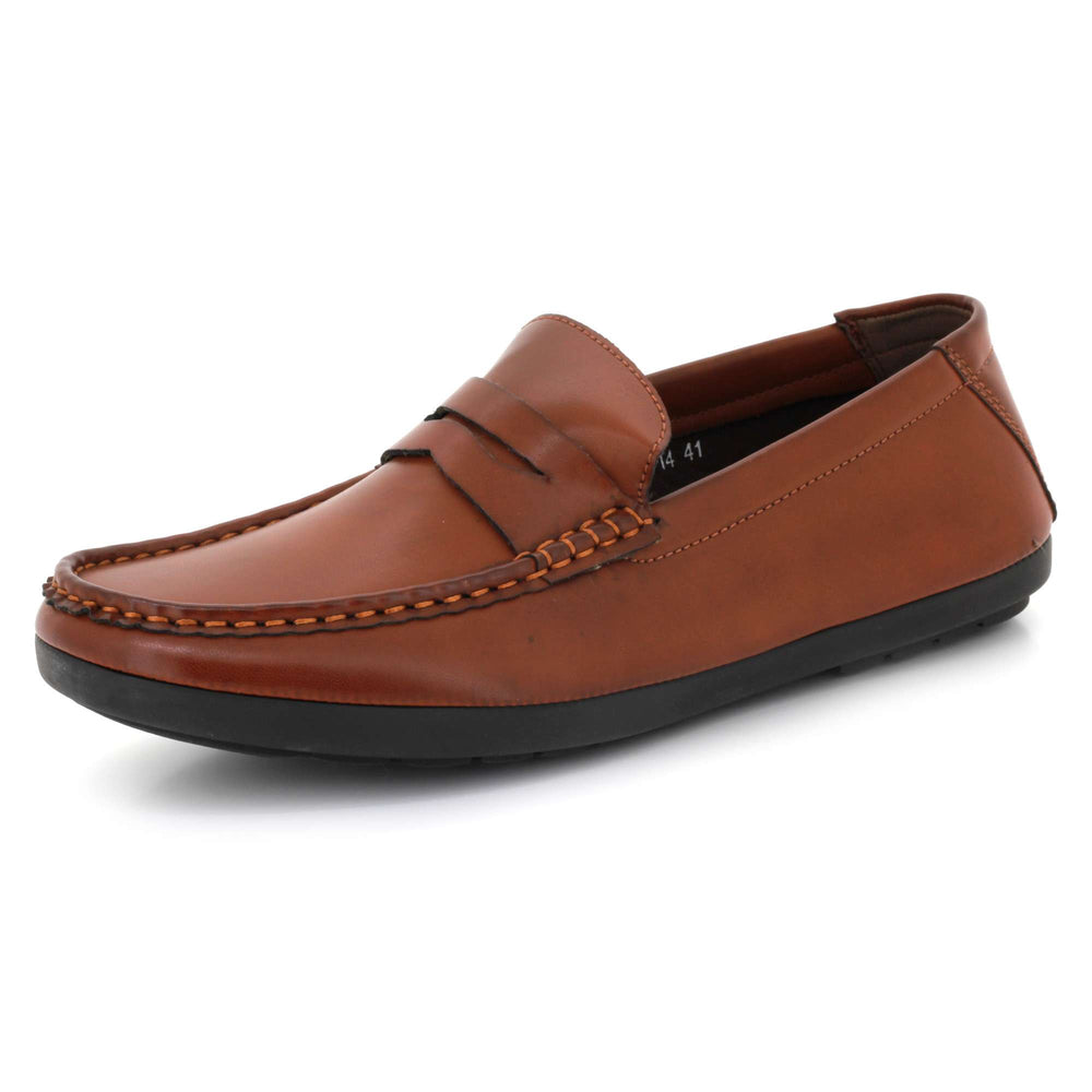 Experience everyday comfort with refined style in these men’s slip-on penny loafers. Crafted from soft faux leather with a rich textured finish, these moccasin-inspired shoes offer a classic look that fits seamlessly into workwear and casual outfits. The cushioned footbed keeps your feet supported throughout the day, while the flexible, durable rubber sole ensures steady grip and smooth movement. Whether you're driving, heading to the office, or dressing up for a relaxed outing, these loafers deliver dependable comfort and timeless appeal.
