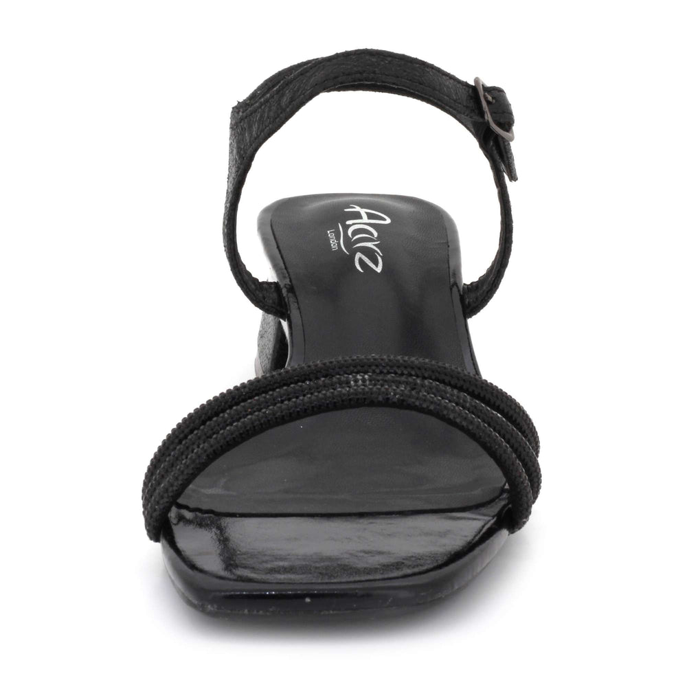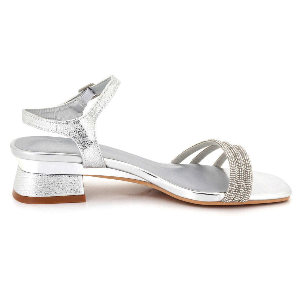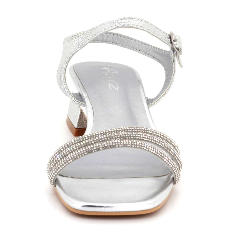 Add sparkle to your footwear collection with these women’s diamante low block heel sandals. Featuring shimmering diamante straps and a sleek open toe design, these sandals offer a stylish yet comfortable fit. The adjustable ankle strap ensures secure support, while the low block heel provides stability for extended wear. Finished with a cushioned footbed for added comfort, these sandals are perfect for weddings, parties, evening events and summer occasions.