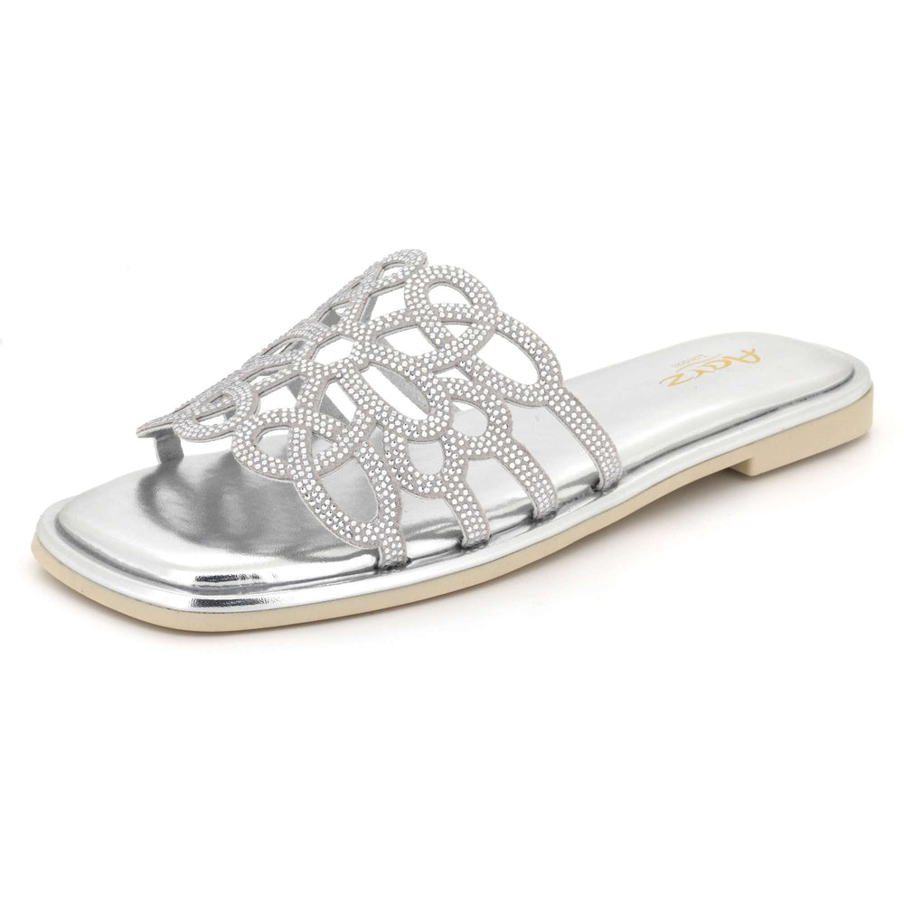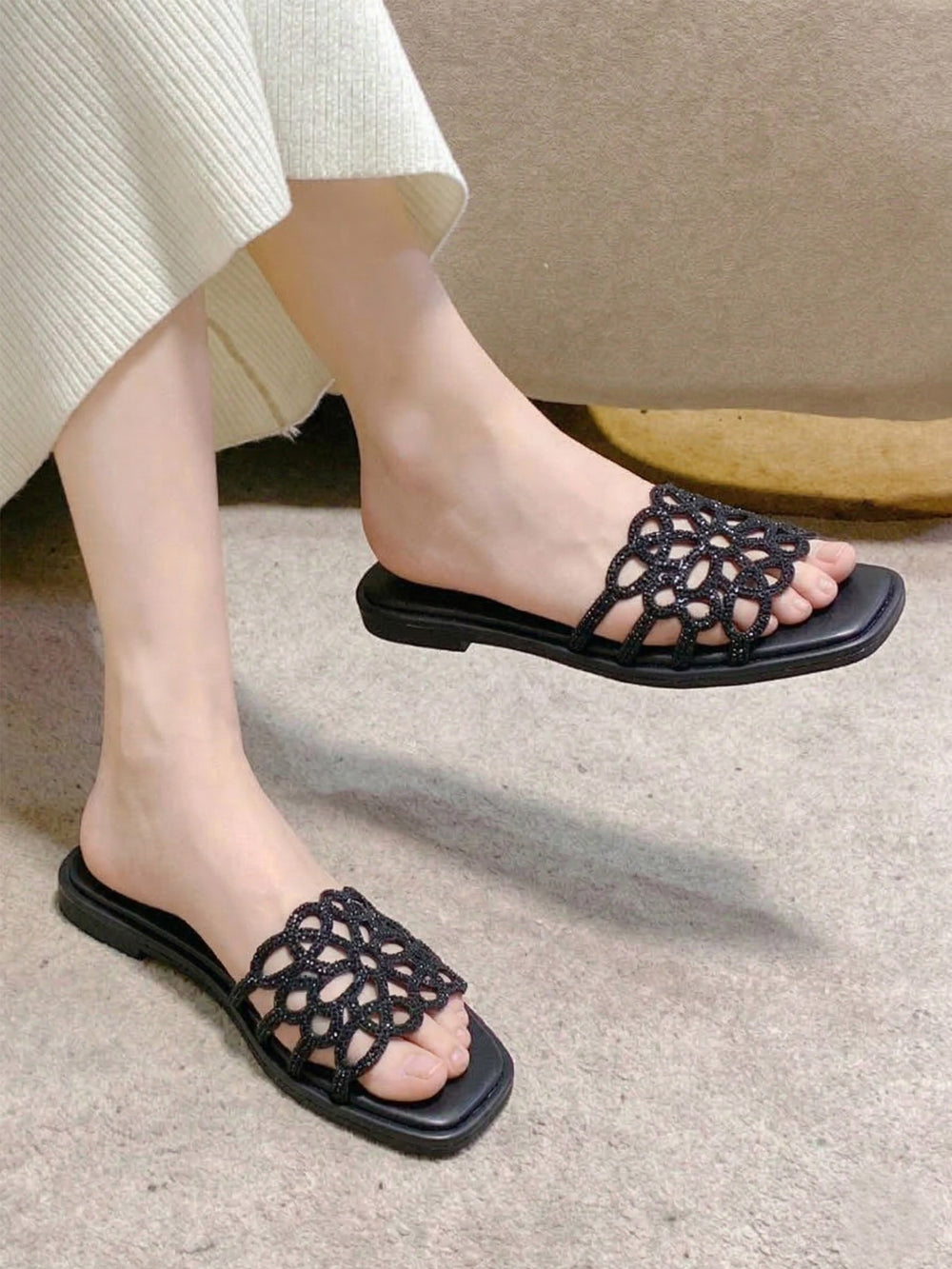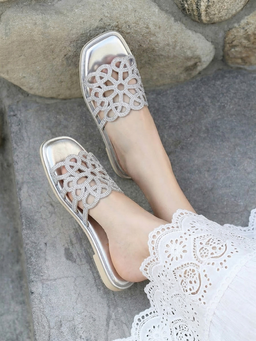 These women’s diamante flat sandals offer a perfect blend of elegance and everyday comfort. The beautifully crafted openwork upper, adorned with sparkling rhinestones, elevates your style while keeping your feet cool and comfortable. Designed with a soft cushioned footbed and a lightweight flexible sole, these slip-on flats are ideal for summer days, casual outings, travel, or festive occasions. Whether paired with dresses or jeans, they add just the right amount of shine and sophistication.