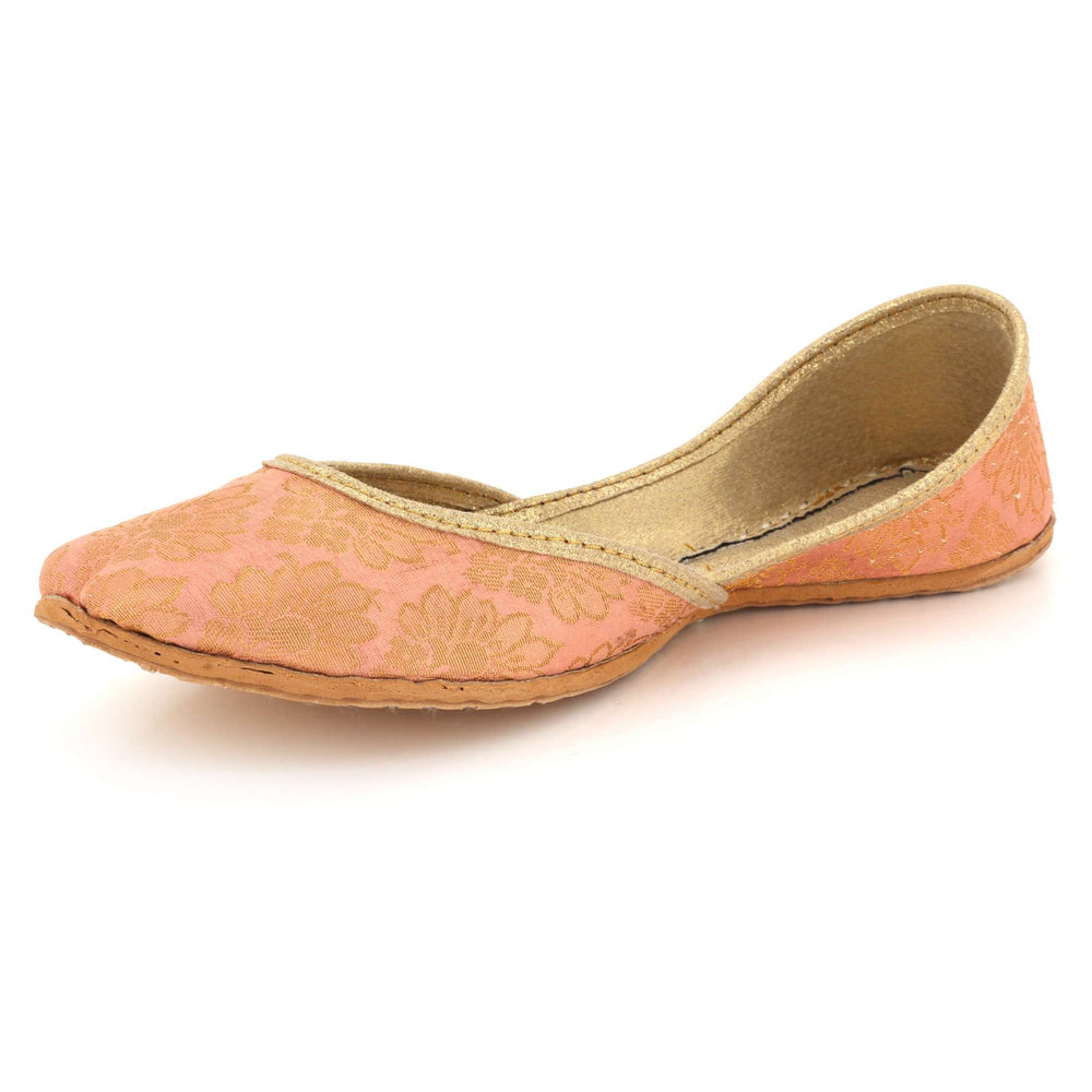 These dual tone gold copper Punjabi khussa flats combine traditional craftsmanship with a modern metallic finish for a striking ethnic look. Inspired by classic mojari footwear, they feature a lightweight slip-on design and cushioned interior for enhanced comfort during weddings, festive celebrations, and cultural gatherings. The contrasting metallic tones add sophistication and uniqueness, making these handmade flats perfect for both bridal styling and contemporary ethnic fashion.