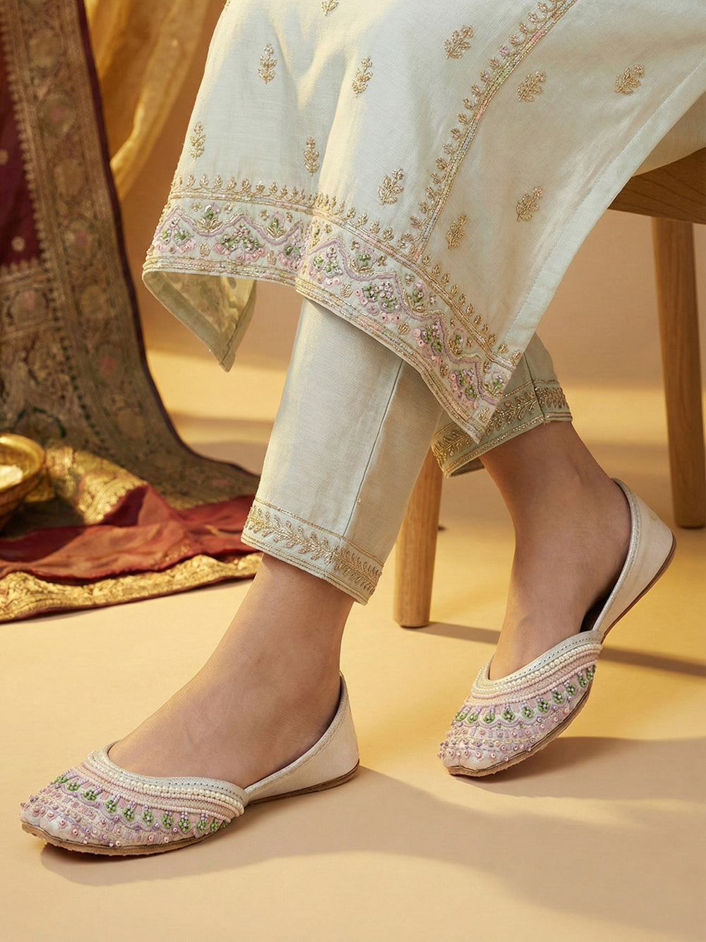 Step into timeless elegance with these beautifully crafted women’s Punjabi jutti shoes, designed with intricate embroidery and traditional craftsmanship. Featuring a classic slip-on style and lightweight comfortable sole, these ethnic flats combine cultural heritage with modern wearability. The detailed embroidered upper adds a feminine and elegant touch, making them perfect for weddings, Eid celebrations, festive occasions, parties, or everyday traditional styling. Designed for comfort and versatility, these juttis pair effortlessly with shalwar kameez, lehenga, kurti, saree, or modern outfits for a stylish ethnic look.
