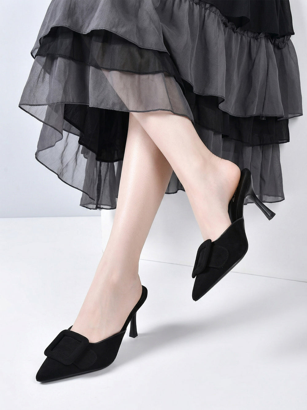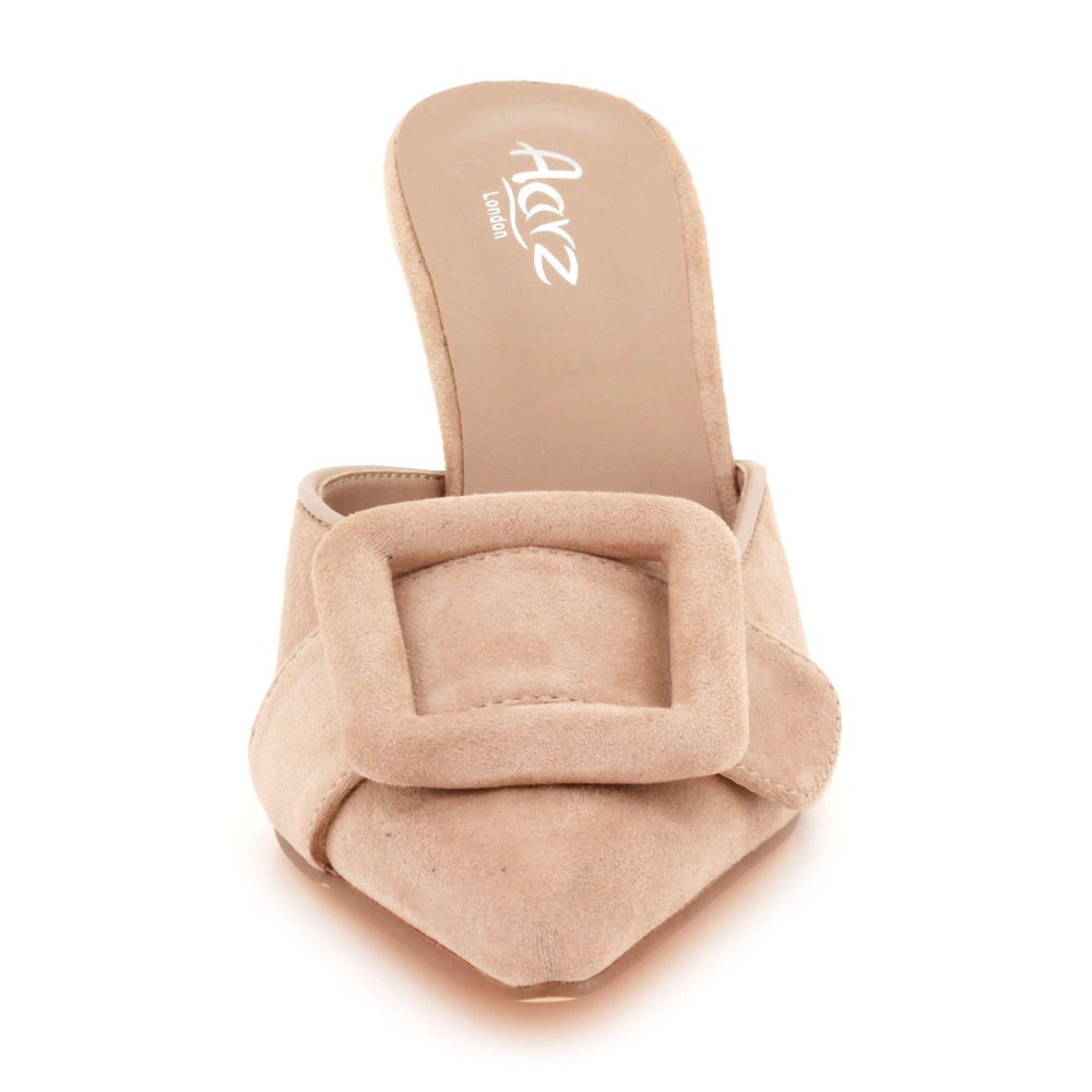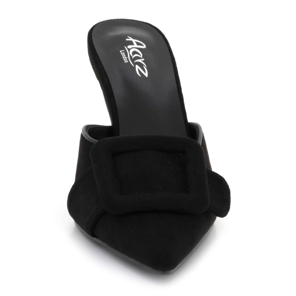 Upgrade your footwear collection with these women’s pointed toe mule heels, designed to combine elegance and modern style. Featuring a sleek pointed toe and a bold buckle detail, these slip-on stiletto heels deliver a refined, fashion-forward look. The high heel enhances your silhouette, while the mule design ensures easy wear and versatility. Ideal for work, evenings, parties and special occasions, these heels are a timeless addition to any wardrobe.